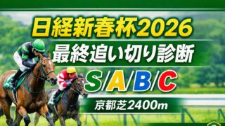 重賞 【日経新春杯2026】最終追い切り診断S/A/B/C|京都芝2400mで“動ける”馬をチェック 日経新春杯2026(京都芝2400m)の最終追い切りを中心に調教診断。出走可能性が高い14頭をS/A/B/Cで整理し、動き・反応・負荷のかけ方から状態を短評でまとめる(最終未確認馬は1週前+中間から暫定)。 2026.01.15 重賞