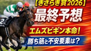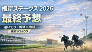 重賞 【根岸ステークス2026】最終予想|追い切りS/A/B/C×馬体×血統で結論(東京ダ1400m) 根岸ステークス2026(東京ダ1400m)の最終予想。追い切りS/A/B/Cと馬体診断、血統、近走内容、枠と展開を統合して印と買い目を整理。軸は「直線で加速できるか」を重視。 2026.02.01 重賞
