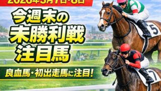 新馬戦 【2026年3月7日・8日】今週末の未勝利戦注目馬|良血馬・初出走馬・勝ち上がり候補をチェック 【2026年3月7日・8日】今週末のJRA未勝利戦で注目したい良血馬・初出走馬・勝ち上がり候補を紹介。ジリアート、リアライズアリス、アビル、ウィロークリークなど、週末にチェックしたい3歳馬を分かりやすく整理しました。 2026.03.07 新馬戦