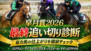 調教診断 【皐月賞2026】最終追い切り診断|ロブチェン、リアライズシリウス、バステールら有力馬の仕上がりを徹底チェック 皐月賞2026の最終追い切り診断。ロブチェン、リアライズシリウス、バステール、カヴァレリッツォ、マテンロウゲイルなど有力馬の最新追い切り内容と陣営コメントをもとに、仕上がりを詳しく分析します。 2026.04.16 調教診断