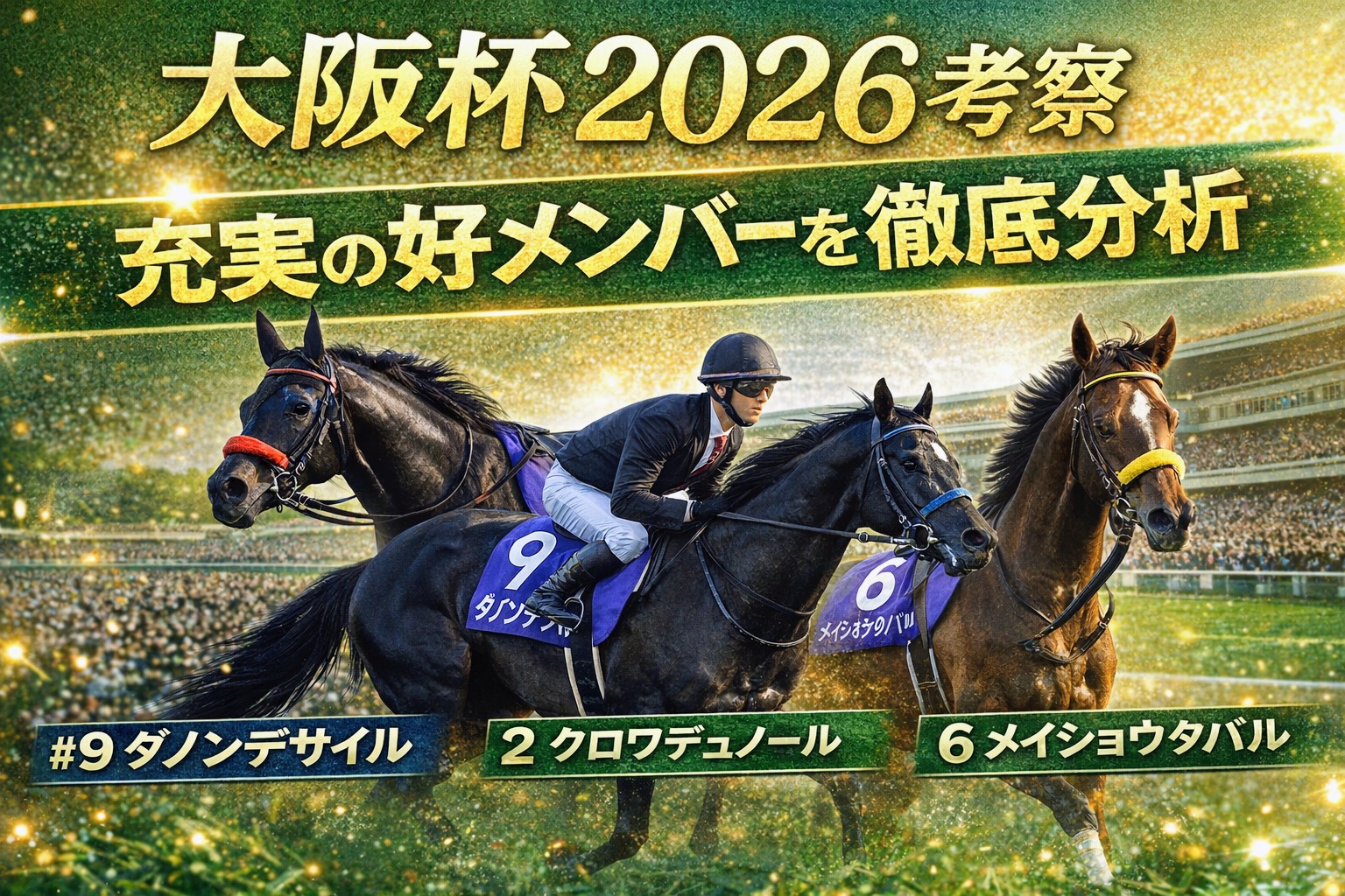 今年の大阪杯は、例年よりメンバーが充実しているぶん、単なる実績比較だけではなく、阪神2000mへの適性と現在の完成度がより重要になる。現段階ではダノンデサイルとクロワデュノールが中心だが、阪神実績のあるメイショウタバル、上昇度の高いショウヘイ、前走内容の良いレーベンスティールも差は小さい。