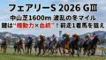 | ファニーバニー | シスキン | 秋明菊賞(1勝)京都 芝1400 3着 | 1400→1600。折り合えば“先行力”が武器になる型。 |