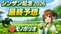 最終予想は◎モノポリオを筆頭に、○サウンドムーブ/▲サンダーストラック/☆ディアダイヤモンド/△フォルナックス/△アルトラムスという構成でした。