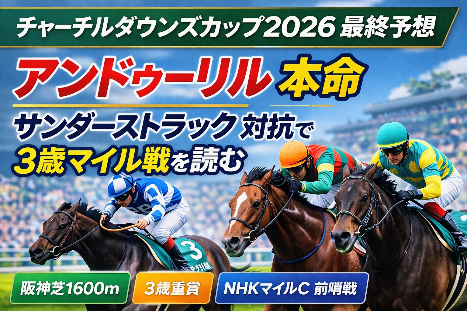 NHKマイルカップへ向けた重要な前哨戦。今年のチャーチルダウンズカップは、シンザン記念勝ち馬サンダーストラック、マイル替わりで見直せるアンドゥーリル、