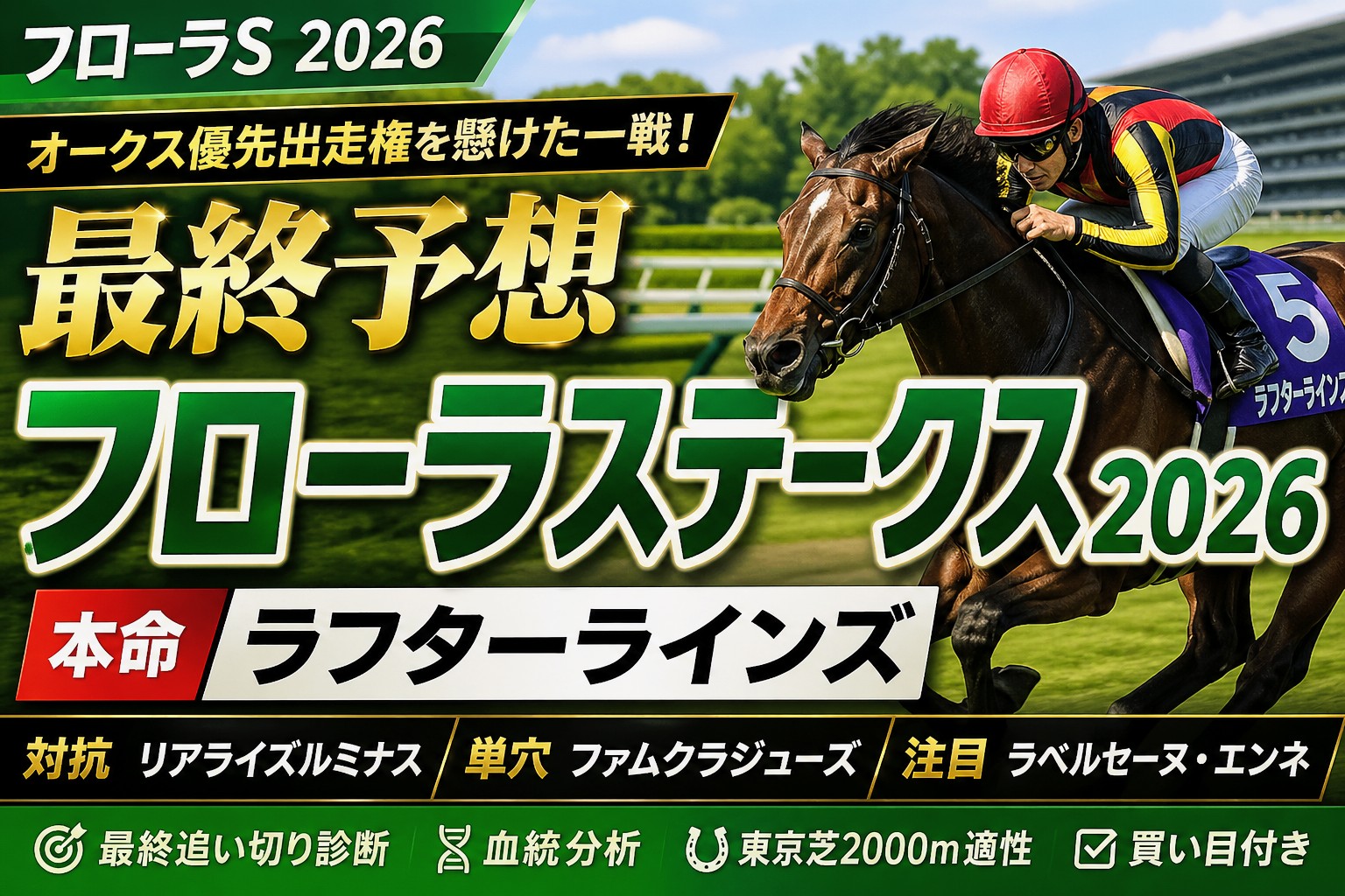 今年のフローラステークスは、ラフターラインズの実績と完成度を素直に信頼したい一戦だ。牡馬相手のきさらぎ賞で見せた末脚、最終追い切りの良さ、4枠5番という枠順を考えると、軸として最もバランスが良い。