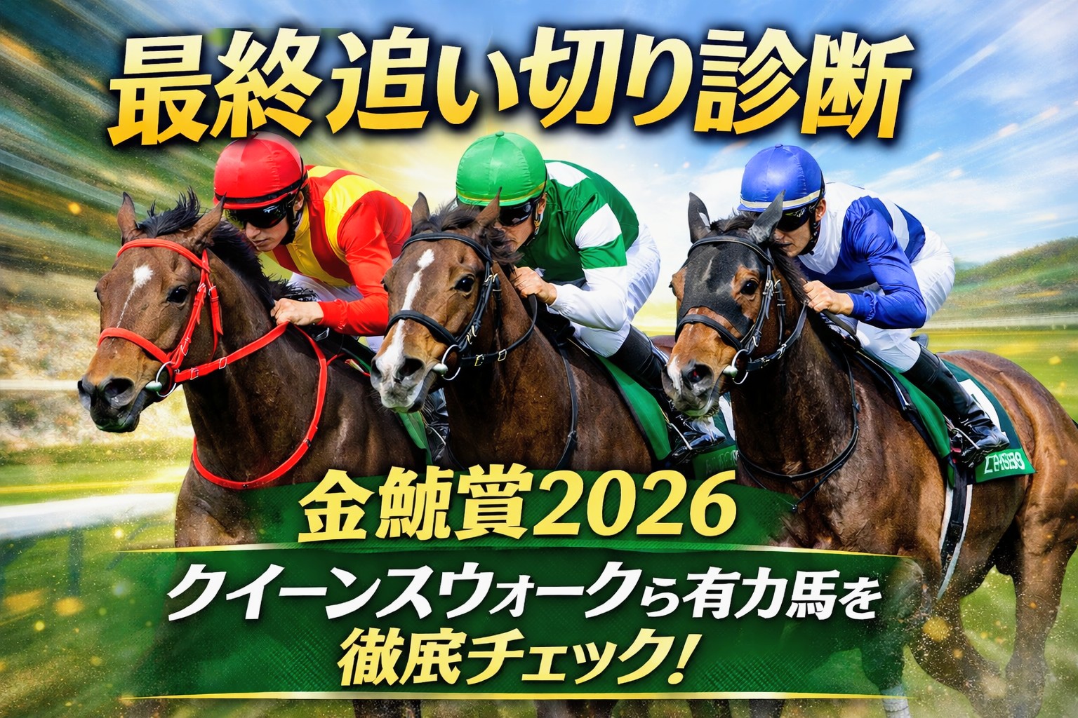 今年の金鯱賞は、実績馬がそろっただけでなく、各馬の仕上げにもはっきり差が見えた。最終追い切り診断としては、クイーンズウォークを最上位評価に据えつつ、ドゥラドーレスとシェイクユアハートの気配も高く評価したい。
