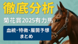 この配合は瞬発力よりも長く脚を使う「持続力型」で、3000m級の菊花賞こそ真価を発揮するタイプです。