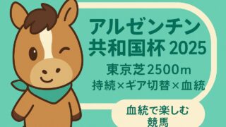 重賞 【条件×血統】アルゼンチン共和国杯 2025|東京芝2500mは「持続力×ギア切替」適性を問う 【条件×血統】アルゼンチン共和国杯 2025|東京芝2500mは「持続力×ギア切替」適性を問う 舞台は東京芝2500m・ハンデ。坂下スタート→1角まで約450m、向正面で一息、3〜4角からロングスパートへ移行し、直線は525.9m。瞬発のワ... 2025.11.03 重賞