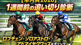 調教診断 【フィリーズレビュー2026 最終追い切り診断】桜花賞トライアルへ向けて気配上昇はどの馬か フィリーズレビュー2026の最終追い切り診断。最新の追い切り情報をもとに、出走各馬の仕上がりや気配をS・A・B・Cで評価。桜花賞トライアルを前に、注目馬の動きと見どころをわかりやすく解説します。 2026.03.06 調教診断