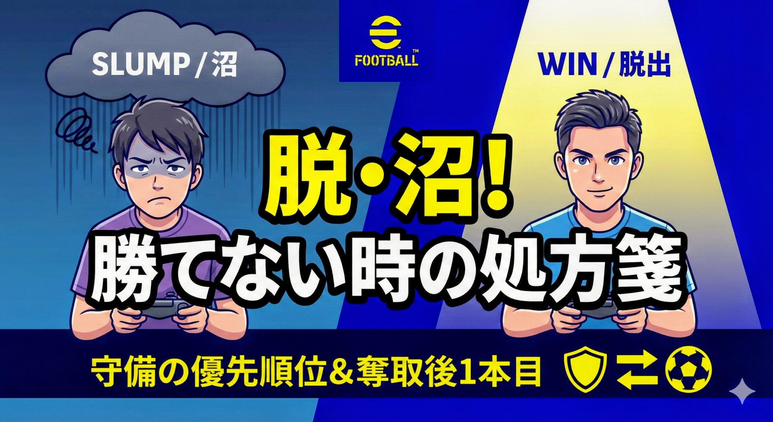 「急に勝てなくなった」「奪えない」「パスが読まれる」「クロス&ミドルでやられる」──いわゆる“沼”は、戦術よりも守備の優先順位と奪取後の1本目が崩れていることが多いです。