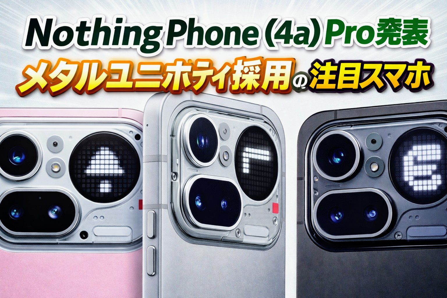 【2026年3月】Nothing Phone (4a) Pro発表|メタルユニボディ採用で“脱・透明”へ進んだ注目ミドルスマホ