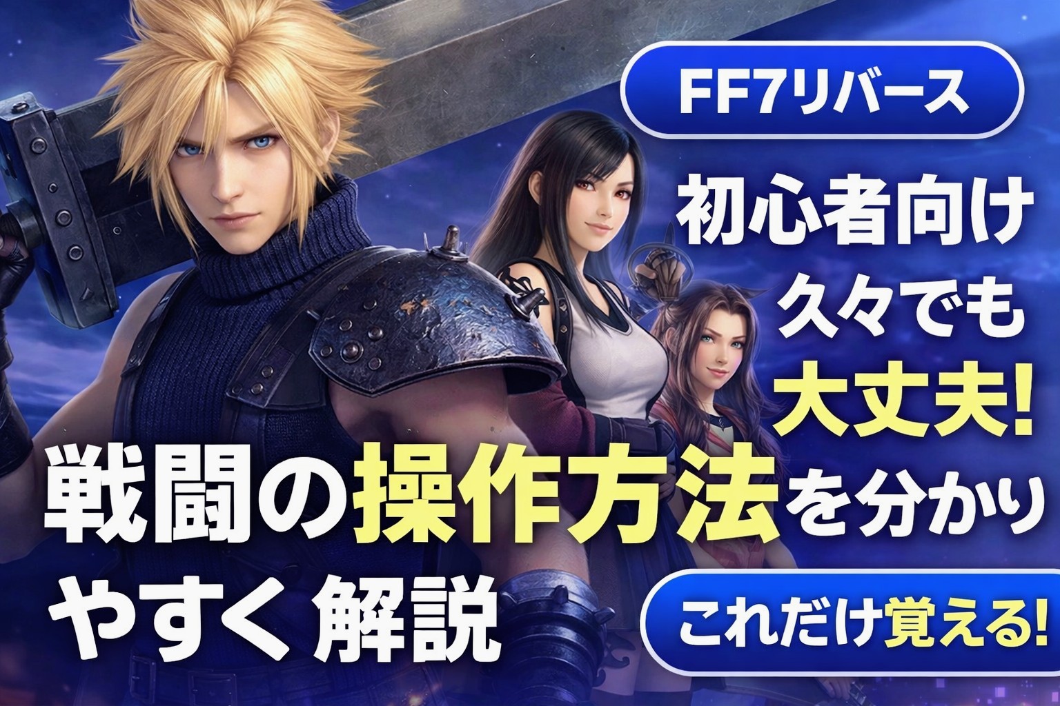 久々に『ファイナルファンタジー7 リバース』を起動すると、戦闘の操作やATBの使い方、仲間切り替えの感覚を忘れてしまいがち。この記事では、復帰勢や初心者でもすぐ思い出せるように、戦闘で本当に大事な操作だけを整理して分かりやすく解説する。