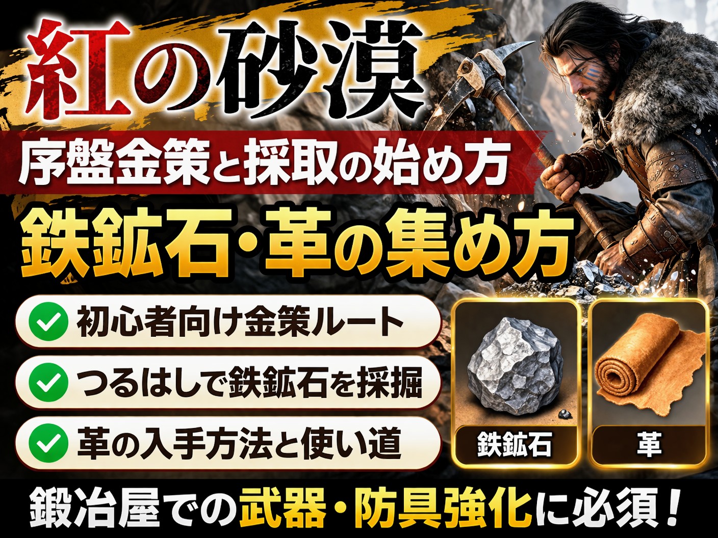 【紅の砂漠】序盤金策と採取の始め方|鉄鉱石・革の入手方法とおすすめ採掘ルートを解説